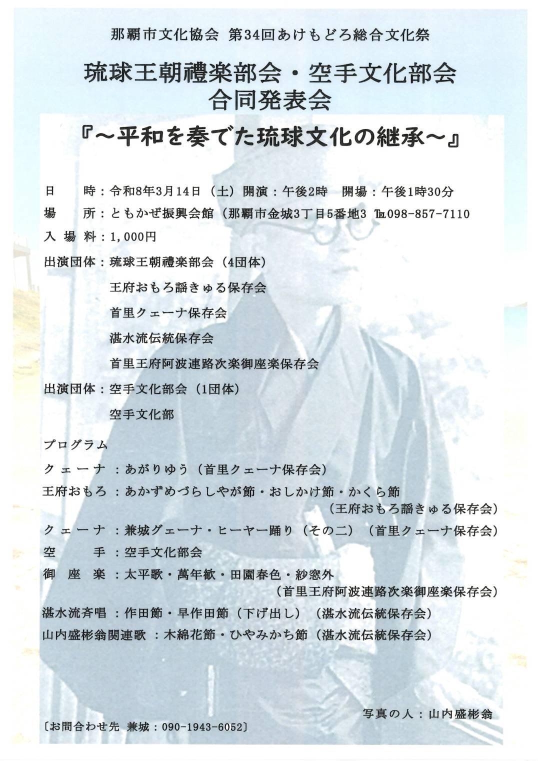 当日は、演奏家の先生方とともにご挨拶を行い、本番に向けた意気込みや、琉球古典音楽と空手が織りなす舞台の見どころについてお話しさせていただきました。武と芸が響き合うこの取り組みが、沖縄の伝統文化の新たな魅力として多くの方々に届くことを願っております。